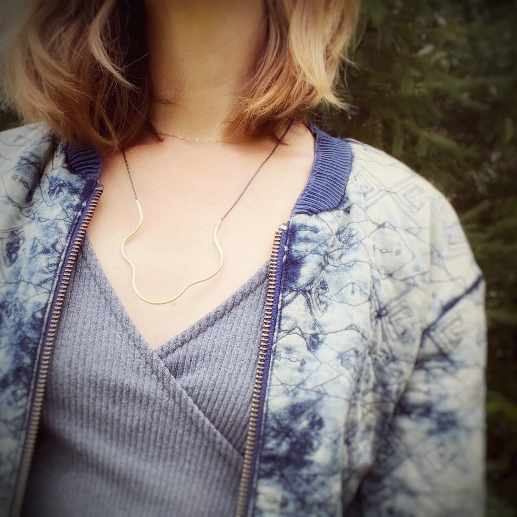 Brass tube shaped into a bold, organic form on blackened sterling silver snake chain.